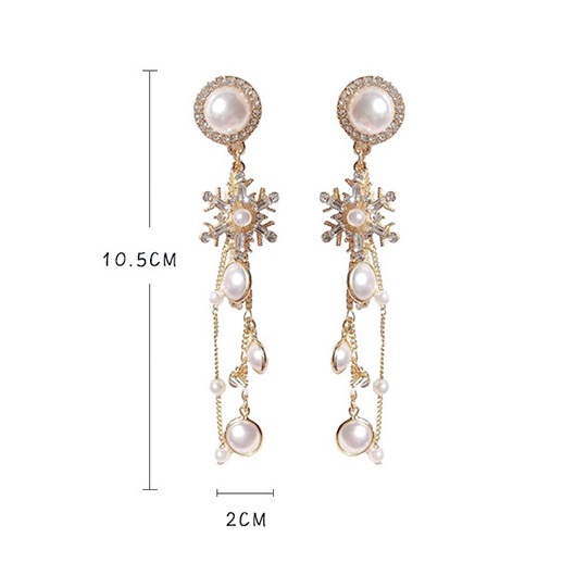 Bông tai đính ngọc trai kết đá dáng dài đi tiệc, bông tai sang chảnh