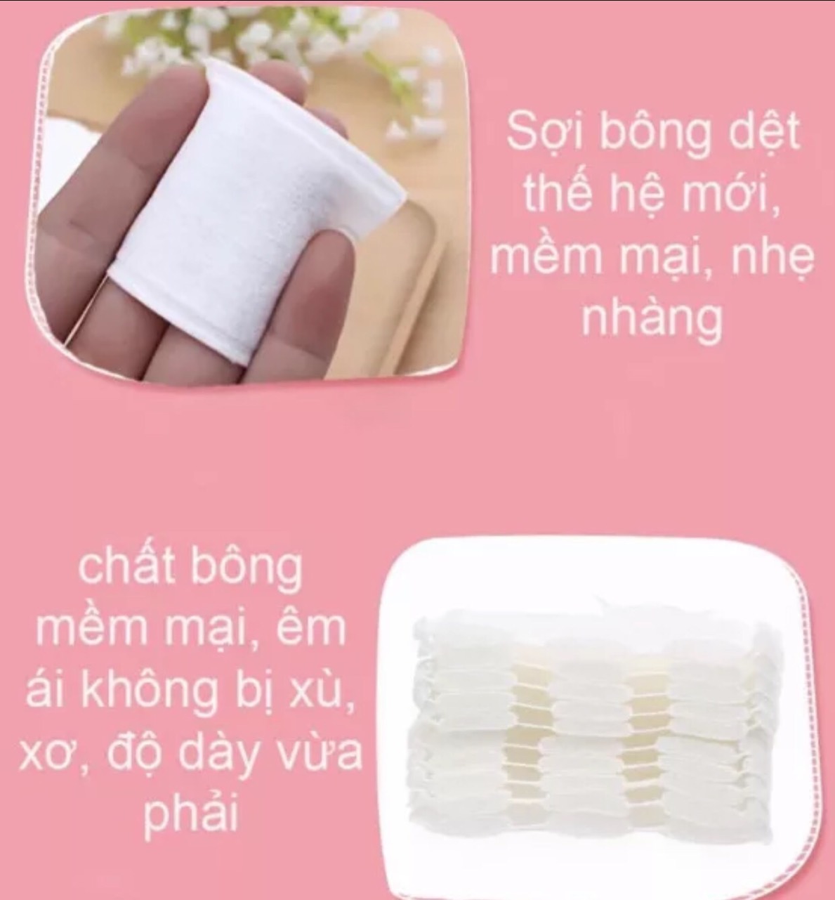 - Gói lớn siêu tiết kiện Bông mền mịn không xơ hay xù lông , không để lại những sợi bông trên da