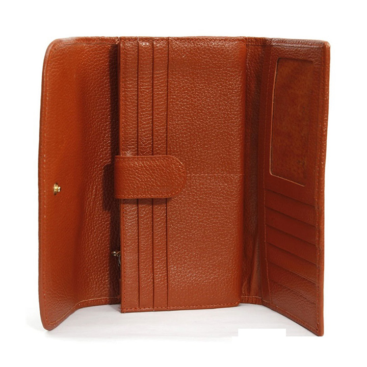 Ví/Bóp nữ da thật cao cấp Huy Hoàng 3 gấp màu nâu 3115