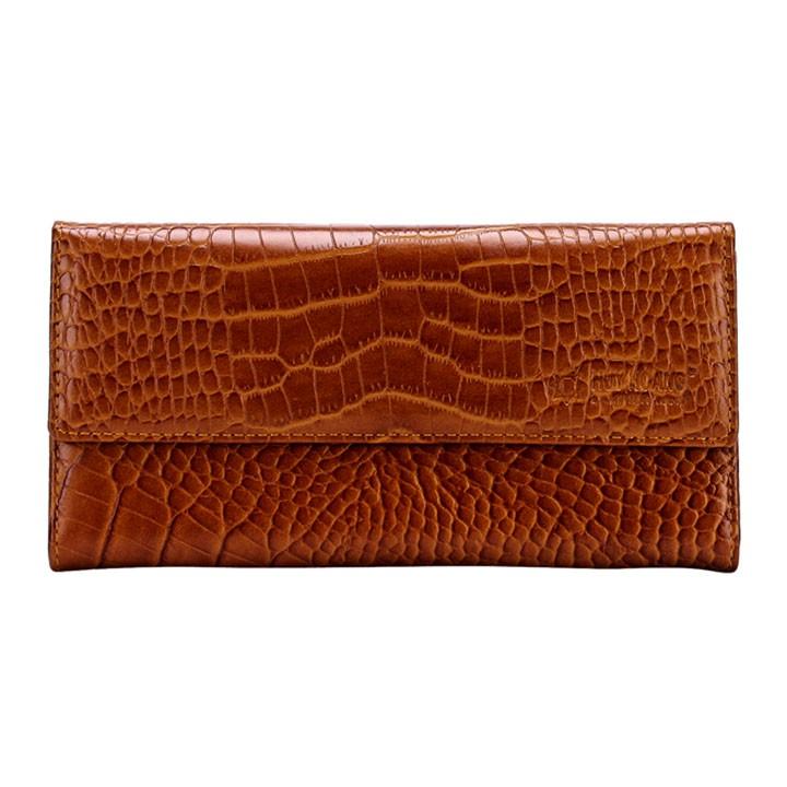 Ví/Bóp nữ da bò Huy Hoàng vân cá sấu lớn 3 gấp màu nâu đỏ 3169