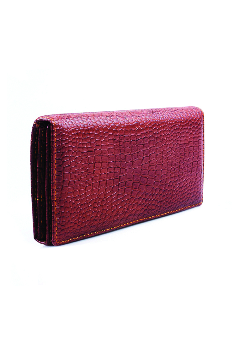 Ví/Bóp nữ Huy Hoàng da bò vân cá sấu 3 gấp màu nâu 3107