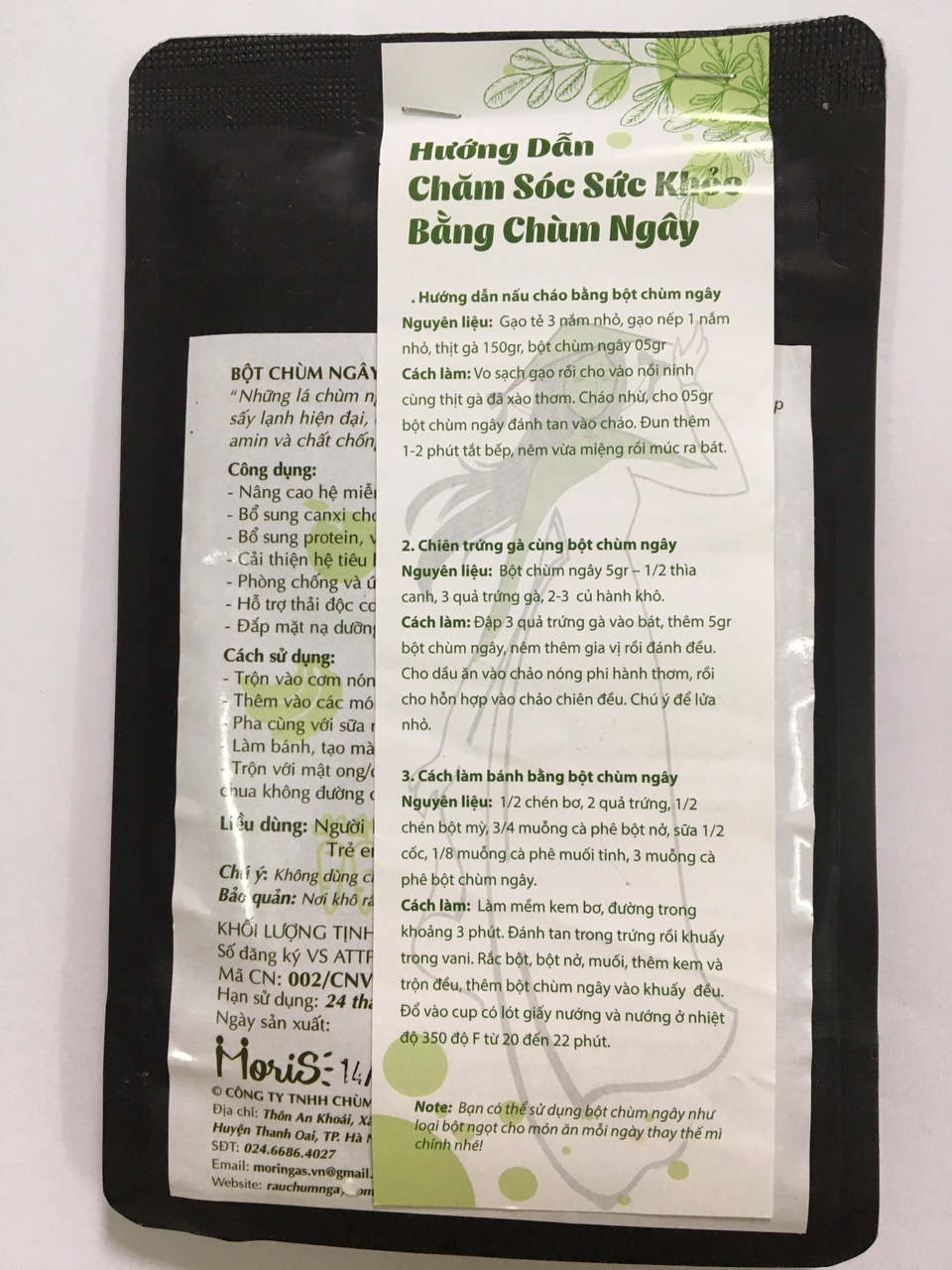 Lá chùm ngây còn chứa nhiều dưỡng chất hơn cả quả và hoa chùm ngây. Dưới đây là kết quả phân tích hàm lượng dinh dưỡng có trong Bột chùm ngây sấy lạnh MoriS tại Trung tâm Phân tích & Giám định Thực phẩm Quốc gia: