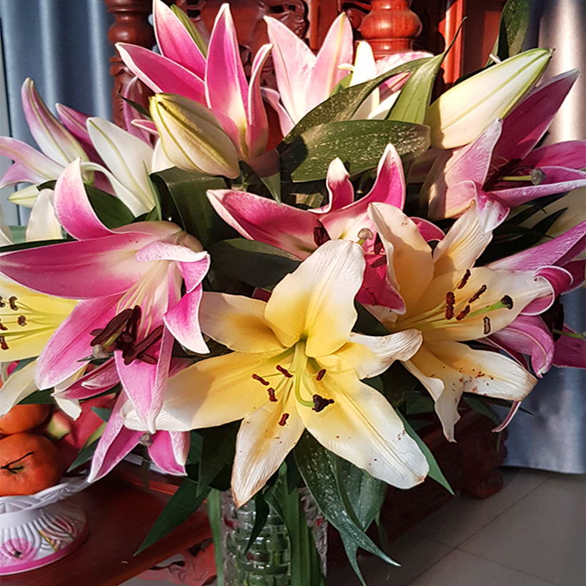 Va hoa lily đã tươi trở lại sau khi có sử dụng bột dưỡng hoa longlife SG của Israel
