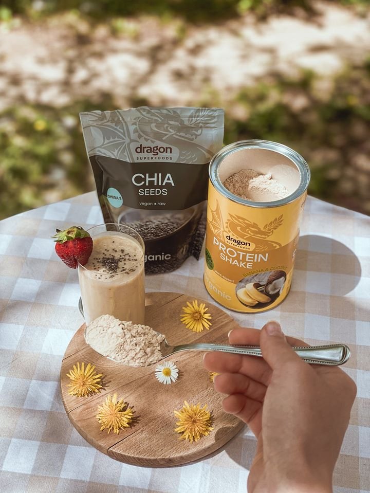 - Bột Protein shake chuối và dừa hữu cơ 450g - Dragon Superfoods Bột protein shake chuối và dừa Dragon Superfoods là thức uống pha sẵn thơm ngon với 52% hàm lượng đạm thực vật. Cơ thể có thể hấp thụ dễ dễ dàng các dưỡng chất để bắt đầu một ngày mới trước và sau khi tập thể dục. Đó là sự kết hợp của các thành phần hữu cơ - một giải pháp vô cùng nhanh chóng cho một ngày bận rộn. Protein thực vật làm phong phú thực đơn với các axit amin, và hương vị thơm ngon của chuối đồng thời kết hợp hoàn hảo với dừa béo ngậy.