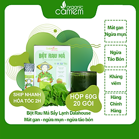 THÔNG TIN SẢN PHẨM BỘT CẢI XOĂN – BỘT CẢI KALE: - Khối lượng: 60g (20 gói x 3g). - Thành phần: 100% nguyên chất từ rau cải xoăn tươi. - Xuất xứ: Việt Nam.