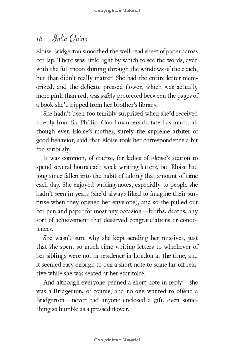 The fifth novel in Julia Quinn's globally beloved and bestselling Bridgerton Family series, set in Regency times and now a series created by Shondaland for Netflix. This is Eloise's story . . .