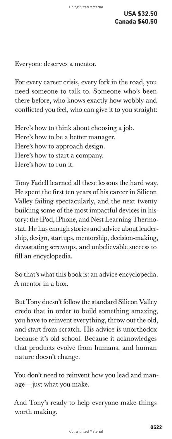 Each quick 5-20 page entry builds on the previous one, charting Tony’s personal journey from a product designer to a leader, from a startup founder to an executive to a mentor. Tony uses examples that are instantly captivating, like the process of building the very first iPod and iPhone. Every chapter is designed to help readers with a problem they’re facing right now—how to get funding for their startup, whether to quit their job or not, or just how to deal with the jerk in the next cubicle.