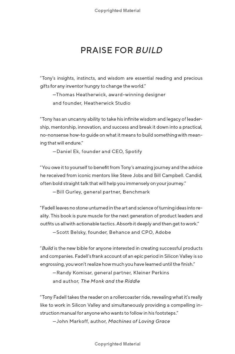 Written for anyone who wants to grow at work—from young grads navigating their first jobs to CEOs deciding whether to sell their company—Build is full of personal stories, practical advice and fascinating insights into some of the most impactful products and people of the 20th century.