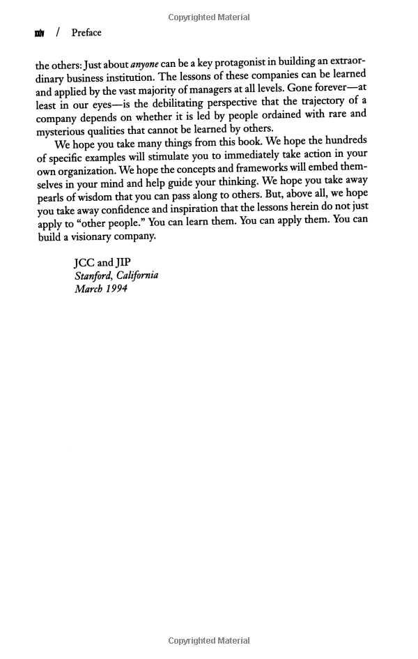 "This is not a book about charismatic visionary leaders. It is not about visionary product concepts or visionary products or visionary market insights. Nor is it about just having a corporate vision. This is a