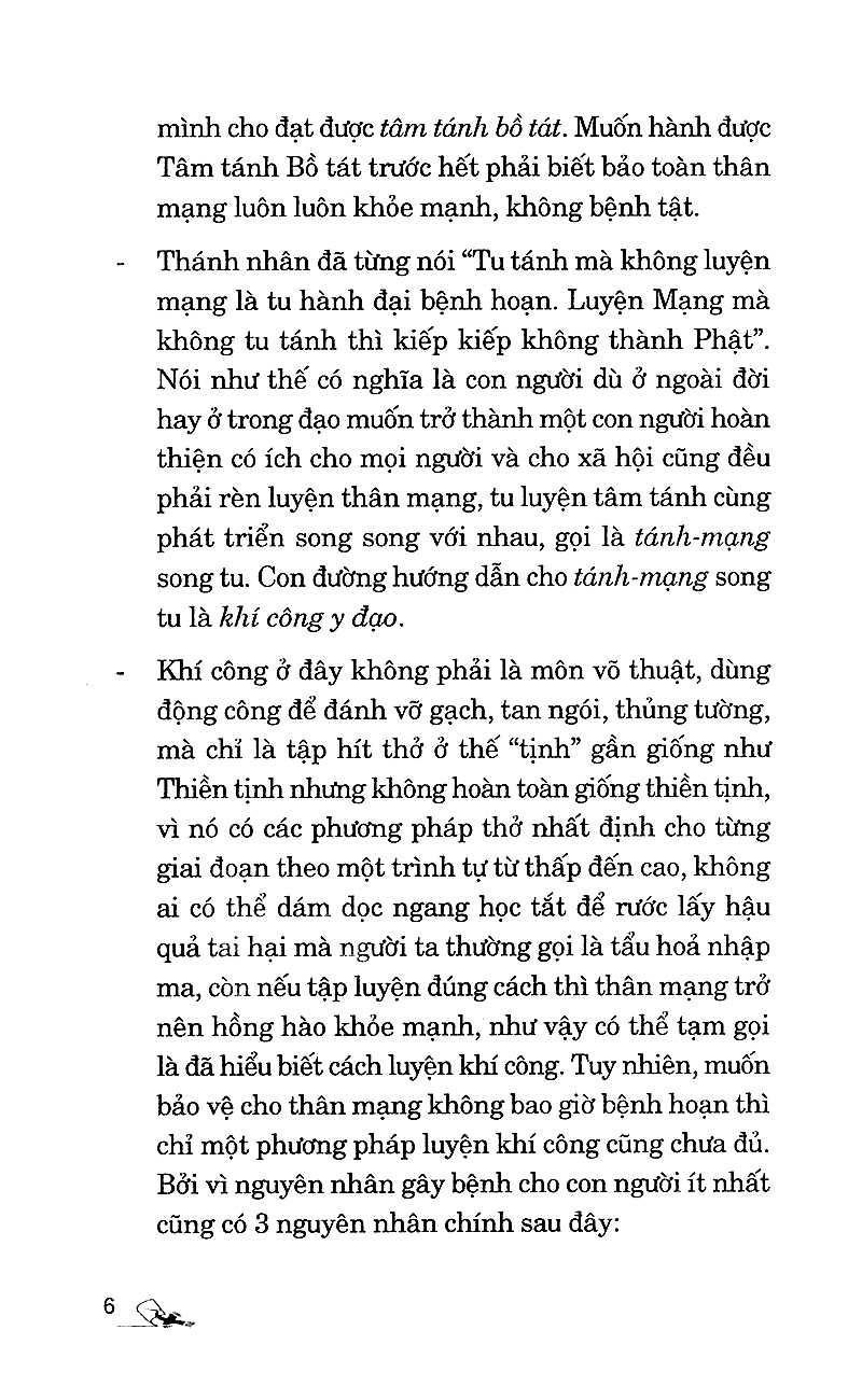 "Khí công ở đây không phải là môn võ thuật, dùng động công để đánh vỡ gạch, tan ngói, thủng tường, mà chỉ là tập hít thở ở thế "tịnh" gần gống như Thiền tịnh nhưng không hoàn toàn giống thiền tịnh, vì nó có các phương pháp thở nhất định cho từng giai đoạn theo một trình tự từ thấp đến cao".