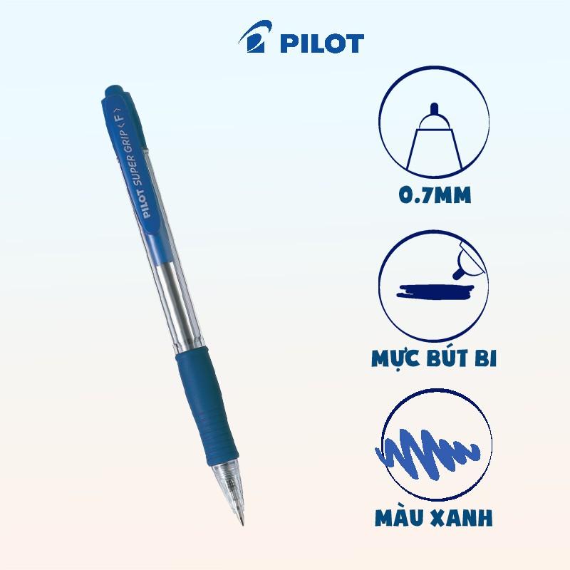 Bút Bi Super Grip.G Mực Xanh Màu sắc Xanh Kích thước ngòi bút 0.5 Quy cách đóng gói 12 cây/hộp Đặc điểm Đầu bi làm bằng hơp chất Vonfram Cacbua siêu bền trong suốt thời