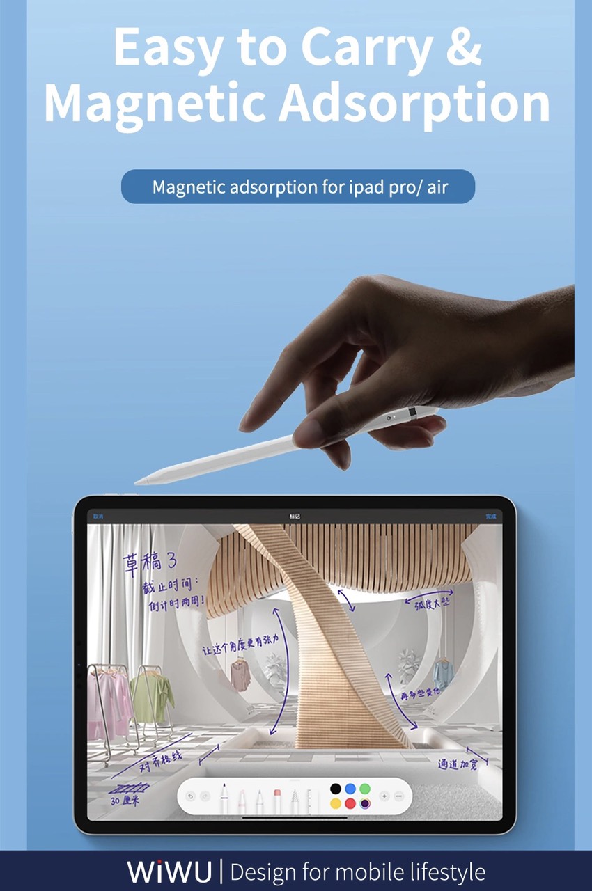 Bút cảm ứng stylus thông minh đầu bút siêu mịn mượt hiệu WIWU Pencil Pro Max cho iPad Pro và các dòng iPad / iPad Mini từ đời 2018 trở lên hỗ trợ viết vẽ