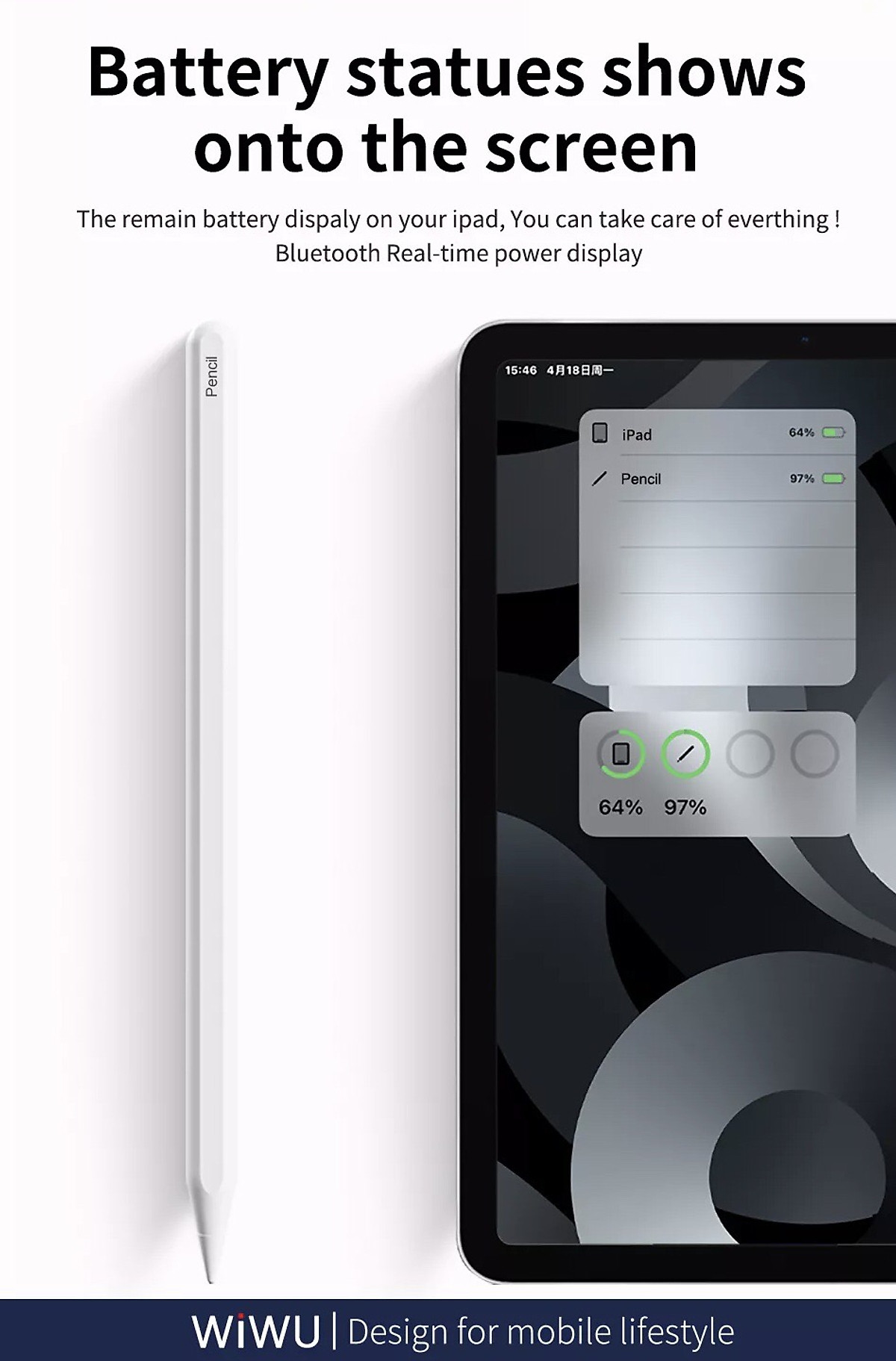 ✨Bút Cảm Ứng Wiwu Pencil W Dành Cho iPad Pro và các dòng iPad / iPad Mini Có Sạc Không Dây Từ Tính, Có Chỉ Báo Pin Trên Thân Bút hỗ trợ viết vẽ nghiêng hơn 60 độ, chống tì tay, trang bị nam châm hít vào iPad - Hàng Chính Hãng