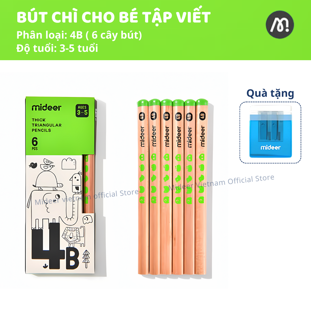 CHÀO MỪNG BẠN ĐẾN VỚI MIDEER VIETNAM HÀNG SẴN SHIP HỎA TỐC, BẢO HÀNH CHÍNH HÃNG ————————————— Bút Chì 2B 4B 6B Mideer cho bé tập viết cạnh tam giác Thick Triangular Pencils Bút chì