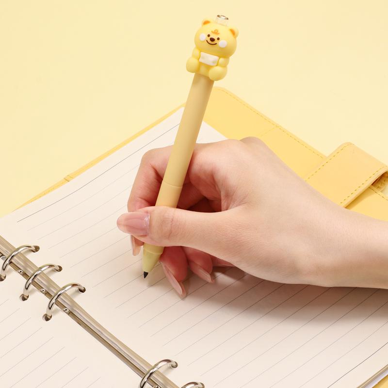 Bút có thiết kế hình Gấu Phô Mai Bear Cheese ở đuôi bút vô cùng đáng yêu, tạo không khí hứng khởi học tập và làm việc.
