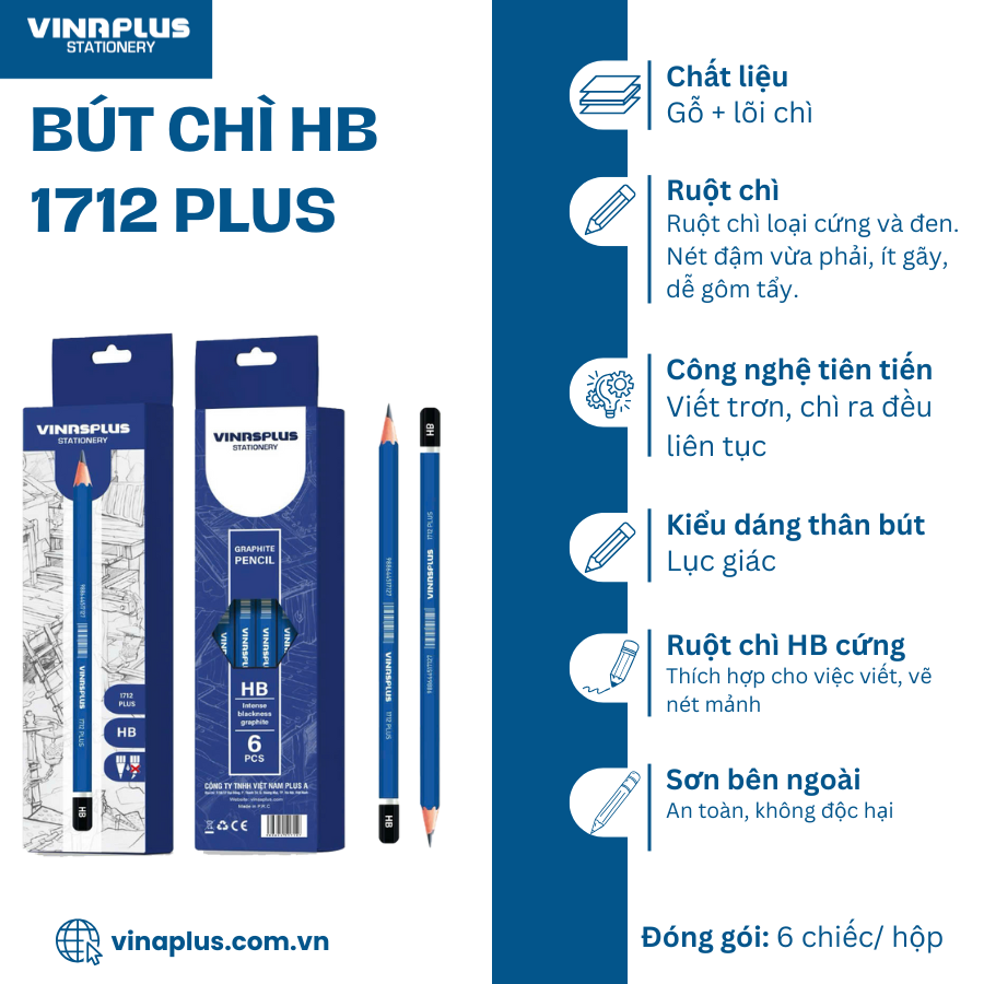 Thông số kĩ thuật : Tên danh mục Bút chì Thương hiệu Điểm 10 Ngòi chì Nét đậm Chiều dài min chì 21 mm Kích thước bút chì 150 mm Trọng lượng 7 gram Chất
