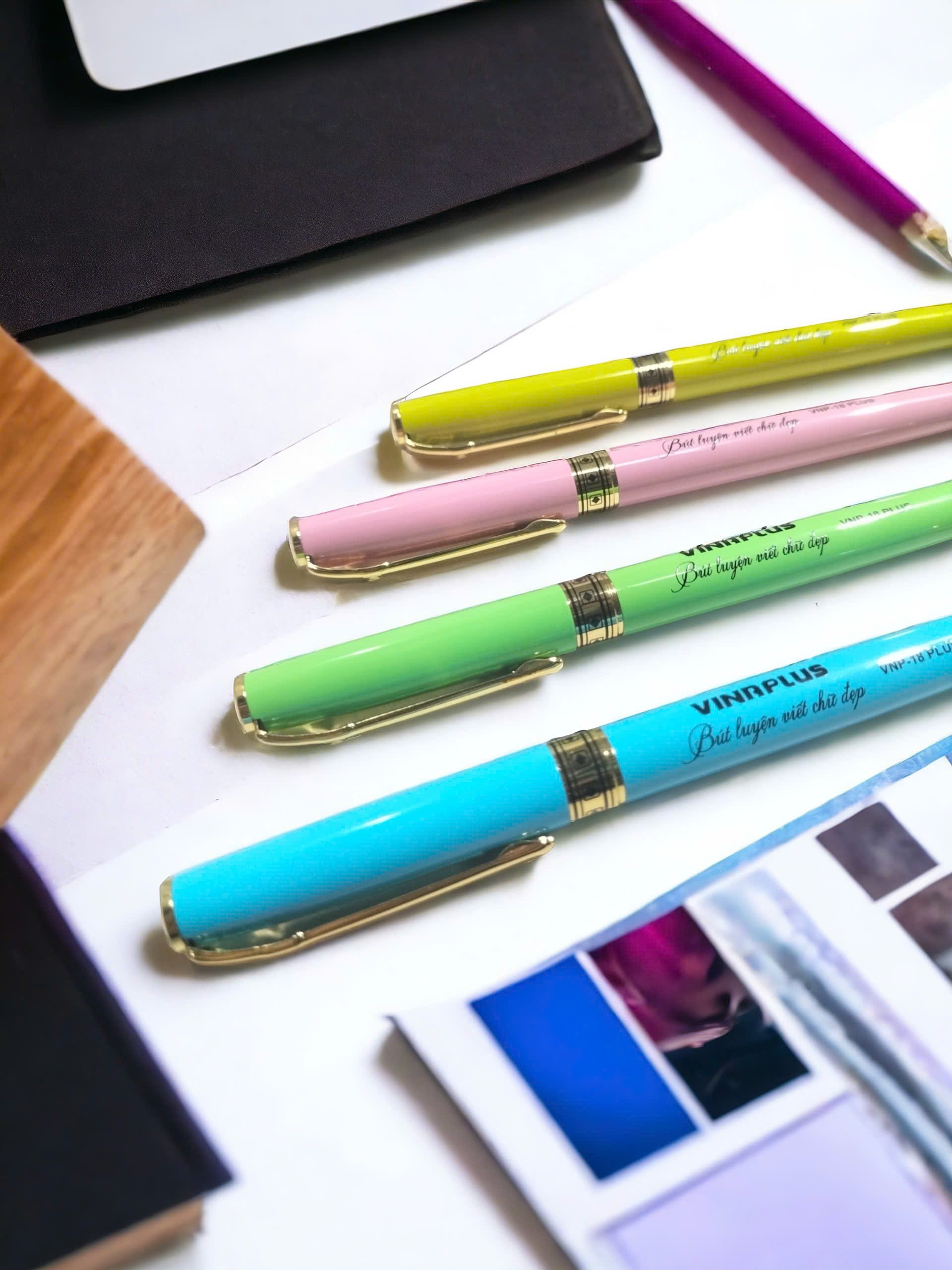 THÔNG TIN SẢN PHẨM: Tên sản phẩm: Hộp bút máy kèm 1 ngòi cao cấp Vinaplus Mã sản phẩm: VNP-26 PLUS Loại ngòi: ngòi mài vàng Màu sắc: Xanh / Xanh lục/ Hồng/ Vàng/ Tím