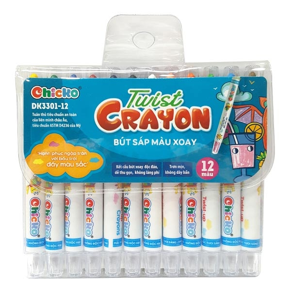 Bút Sáp Màu Xoay - 12 Màu DK 3301-12 (Túi Nhựa PVC) Sản phẩm được làm từ chất liệu sáp cao cấp, độ bám dính cao, màu sắc tự nhiên, an toàn cho sức khỏe