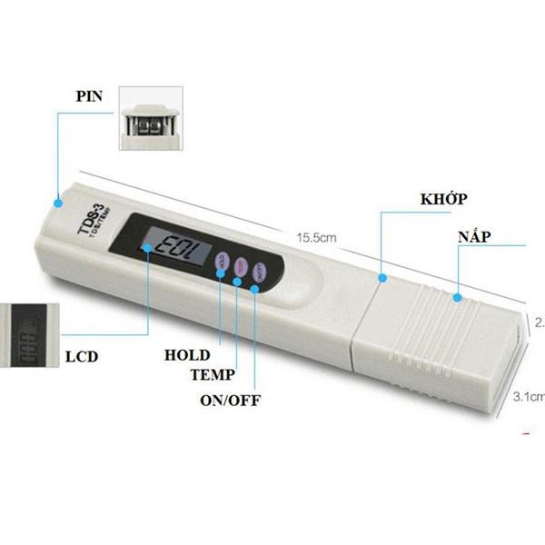 Bút TDS có tác dụng đo mức độ chất rắn hoà tan trong nước và nhiệt độ của nước.