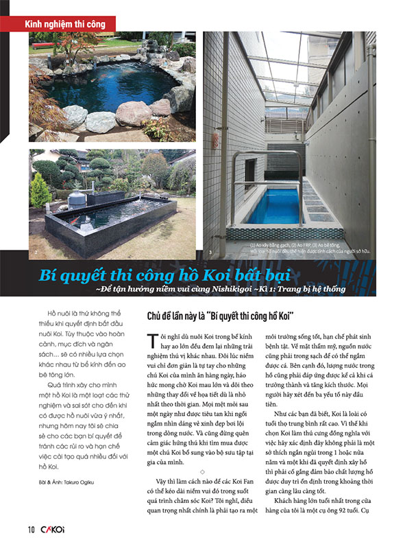“CÁ KOI” là phiên bản tiếng Việt của Gekkan Nishikigoi (Koi Magazine do Shinkokai Nhật Bản phát hành), được phát hành định kỳ 3 tháng tại Việt Nam. Có trong tay quyển “CÁ KOI” nghĩa là có trong tay những thông tin mới, chuẩn xác và chính thống nhất về Koi nói chung, ngành Koi tại Nhật Bản và Việt Nam nói riêng.