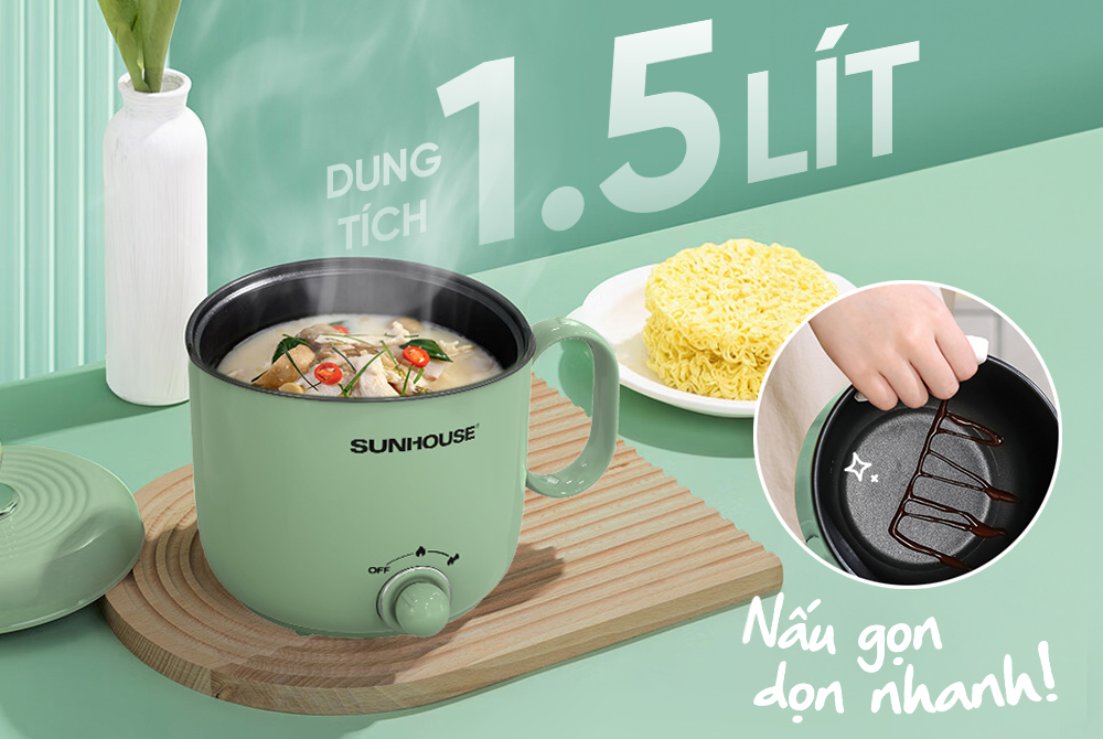 Ca lẩu điện Sunhouse SHD4515G là sản phẩm nhà bếp tiện lợi không chỉ giúp bạn nấu mì, lẩu mà còn các món khác như cháo, canh, súp, hấp ... Nổi bật với thiết kế