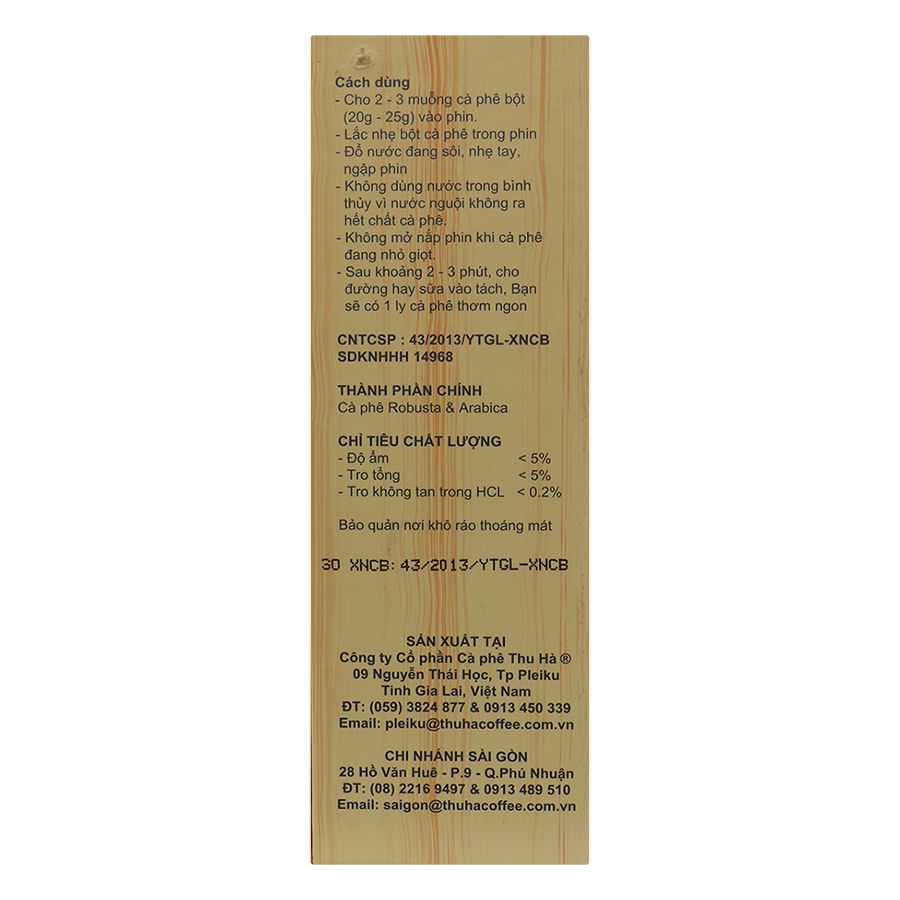 - Cà Phê Bột Hương Chồn Thu Hà (250g / Hộp) được sản xuất từ những hạt cà phê được chọn lựa kỹ lưỡng, hạt to và đồng đều, không pha trộn hương liệu, không