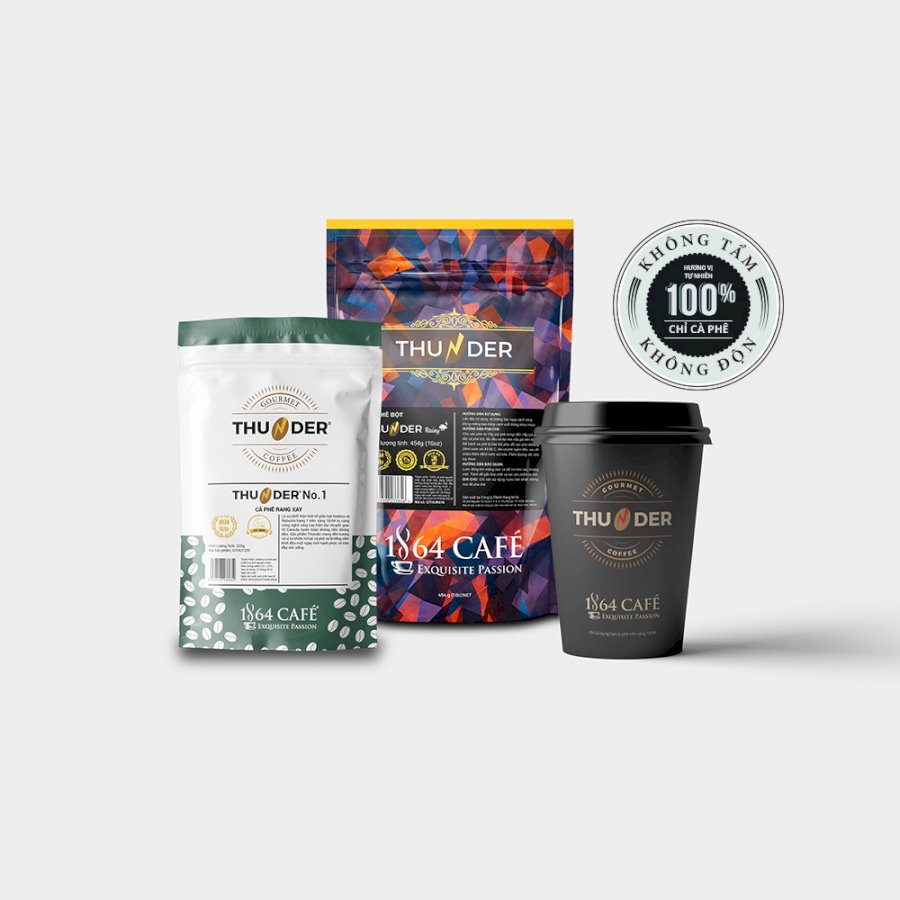 Sản phẩm cà phê THUNDER sử dụng hạt Robusta hạng 1, trên sàng 18/64 in theo tiêu chuẩn mới nhất TCVN: 4193:2014. Đây là hạt cà phê Robusta nổi tiếng trên thế giới của vùng Cao nguyên Việt Nam đậm chất và nồng nàn, hàm lượng Cafeine cao đến 2,4%, thích hợp gu thưởng thức cà phê đá, cà phê sữa đá của người Việt Nam hoặc những người thích cảm giác sảng khoái bắt đầu cho ngày mới; tuy nhiên do hàm lượng cafeine cao, Quý khách cũng nên cân nhắc khi uống vào buổi chiều muộn hoặc những vị nào dị ứng với cafeine thì không nên sử dụng.