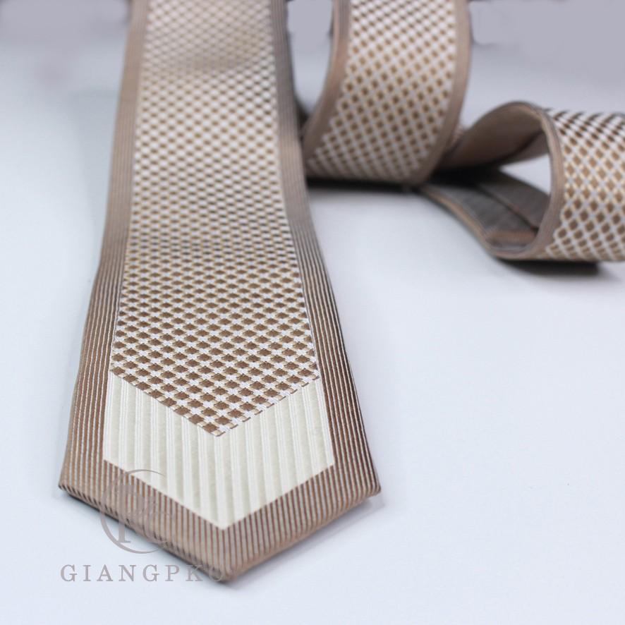 ✨Cà vạt nam bản 6cm chú rể Giangpck q62004 nâu nhọn trắng