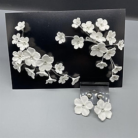 Cài tóc cô dâu hoa trắng kèm bông tai cùng bộ