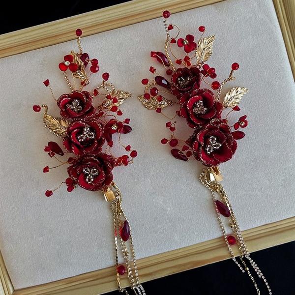 Cài tóc cô dâu hoa đỏ thiết kế thủ công cao cấp #short