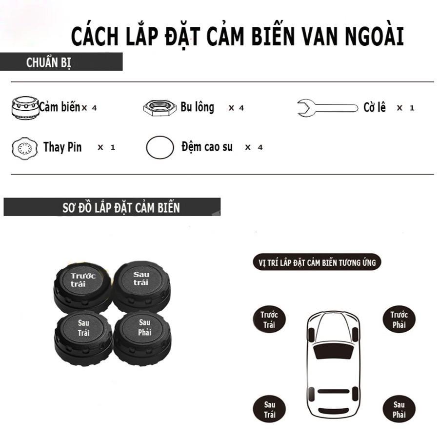Cảm biến áp suất lốp oto cảnh báo Tiếng Việt giá rẻ