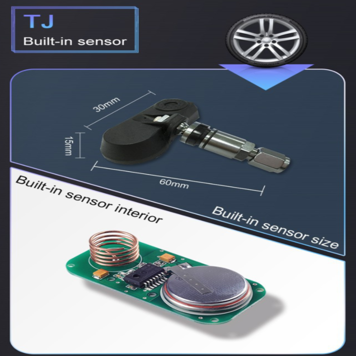 Cảm Biến Áp Suất Lốp Gắn Trong TPMS THÔNG SỐ KĨ THUẬT: - Kiểu màn hình: màn hình màu - Kích thước: 95*82*30mmn - Nhiệt độ làm việc: -20°C+80°C - Chạy bằng năng lượng mặt