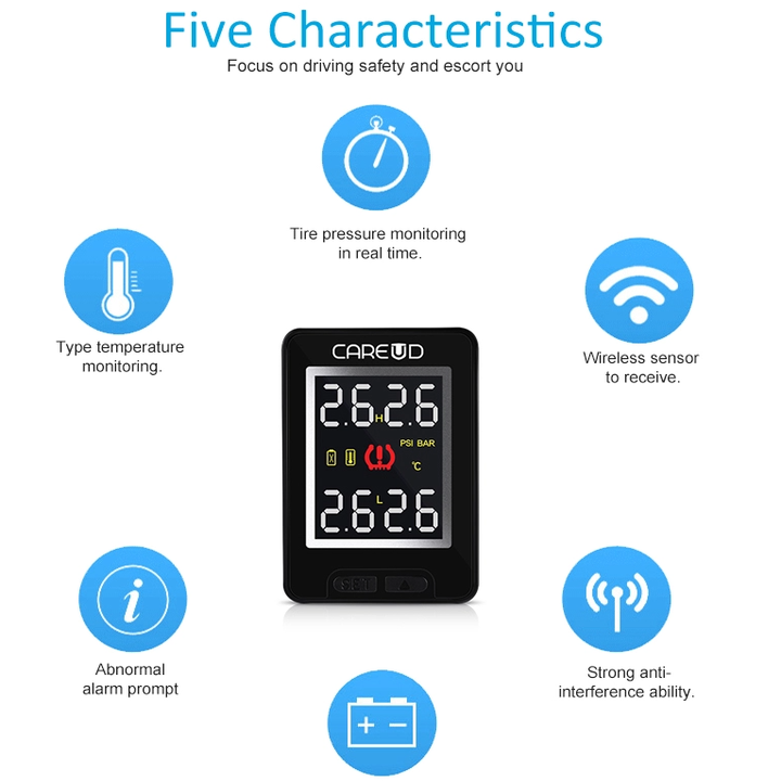 Cảm biến áp suất lốp trong cao cấp thương hiệu Careud dành cho các hãng xe - Cảnh báo áp suất, chính xác: ±1.5PSI (±0.1bar) - Điện áp: 8-16V - Hàng Nhập Khẩu Cảm