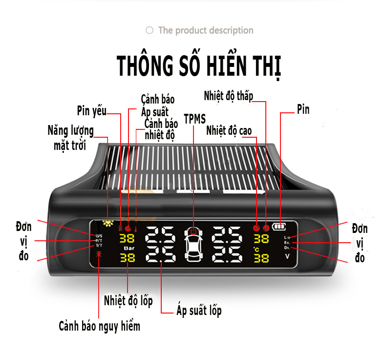 Cảm Biến Áp Suất Lốp Ô Tô TPMS HUYNAM AUTO Gắn Van NGoài Màn Hình LCD Pin Năng Lượng Mặt Trời