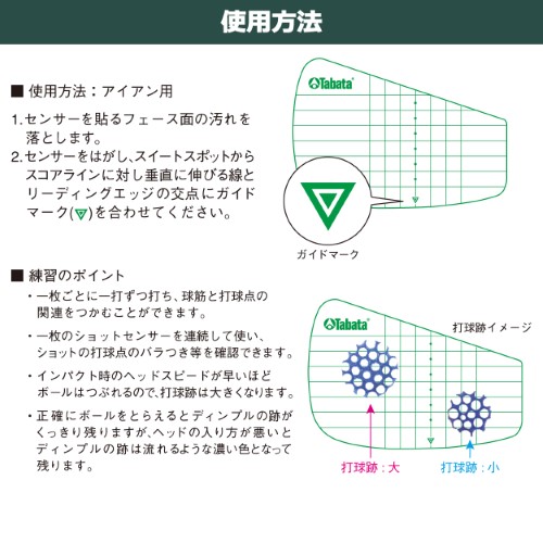 Cảm biến mặt gậy Iron GV0334 ghi lại điểm đánh của quả bóng trên giấy nhạy cảm với áp lực loại nhãn dán. Số lượng: 16 tờ. Điểm tròn Hiểu hướng dao động. Đối với Bàn ủi