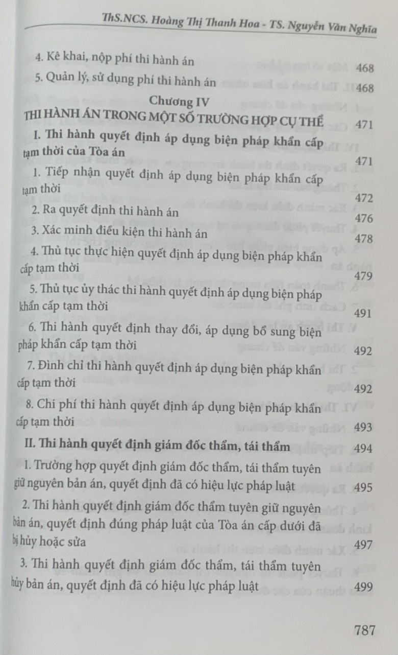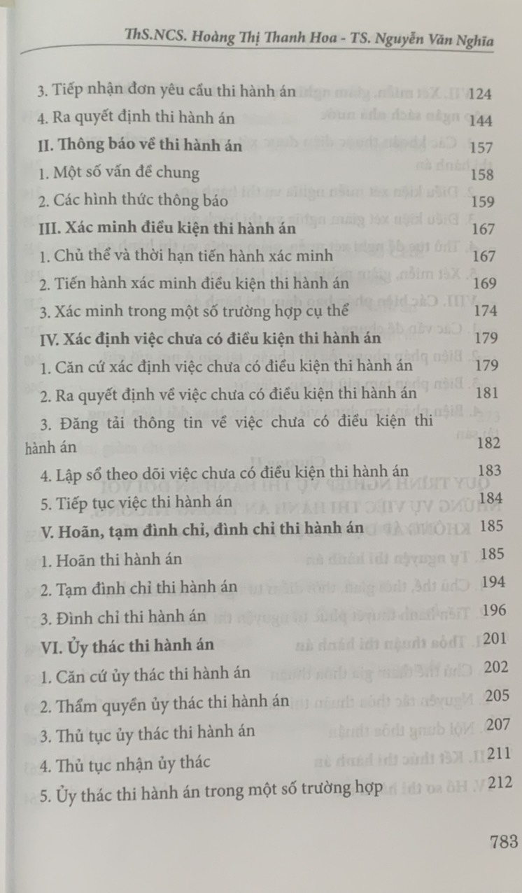 Để đáp ứng nhu cầu tra cứu nhanh, chính xác các quy định của pháp luật thi hành án dân sự và các quy định của pháp luật khác có liên quan trong quá trình tổ chức thi hành bản án, quyết định của Tòa án, đồng thời chỉ ra một số vướng mắc trong các quy định của pháp luật khi áp dụng vào các tình huống thi hành án cụ thể giúp Chấp hành viên áp dụng chính xác pháp luật, hạn chế thấp nhất sai sót có thể xảy ra, tránh thiệt hại thuộc phạm vi trách nhiệm bồi thường của Nhà nước và tránh gây thiệt hại cho các bên đương sự, Nhà xuất bản Tư pháp giới thiệu cuốn: “Cẩm nang thi hành án dân sự” (Tái bản lần thứ hai, có sửa đổi, bổ sung) của ThS.NCS. Hoàng Thị Thanh Hoa và TS. Nguyễn Văn Nghĩa.