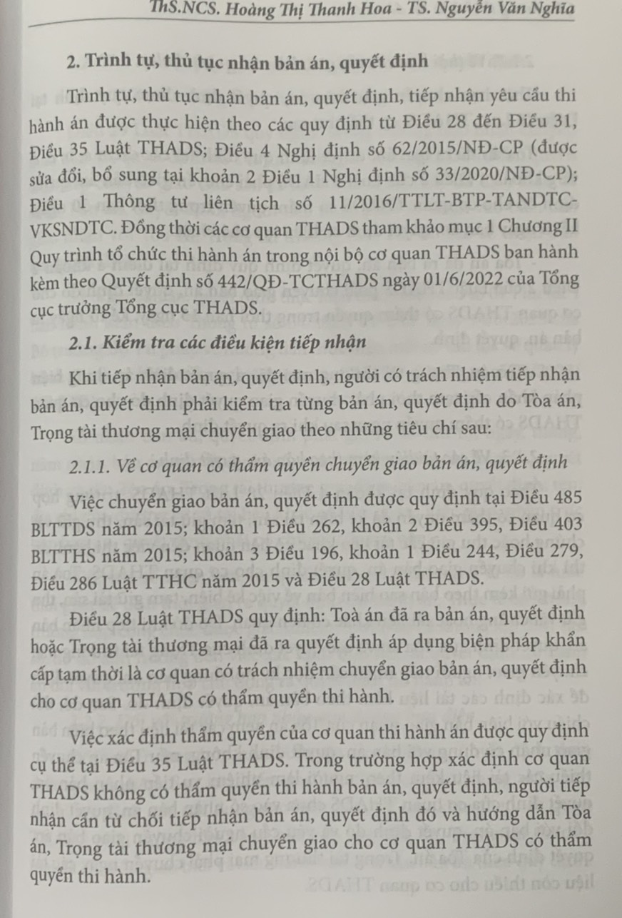 Cẩm nang thi hành án dân sự (Tái bản lần thứ hai, có sửa đổi, bổ sung) Tác giả: ThS.GV. Hoàng Thị Thanh và TS. Nguyễn Văn Nghĩa.