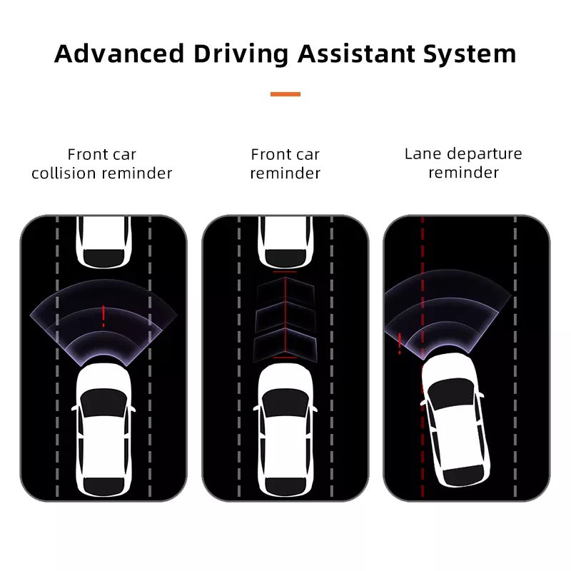 ADAS phát hiện xe phía trước di chuyển, có cảnh báo lấn làn khi di chuyển trên 60km/h và khoảng cách với xe phía trước được cảnh báo bằng giọng nói trên camera.