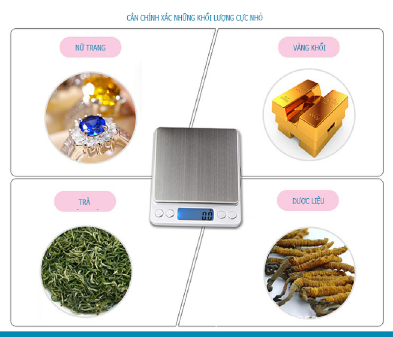Cân tiểu li điện tử 500g - 0.01g là thiết bị lý tưởng cho y tế, thí nghiệm, kim hoàn, cắt thuốc, đếm số lượng đóng gói hương nhan, tăm tre, kẹp gim xuất khẩu,gia vị