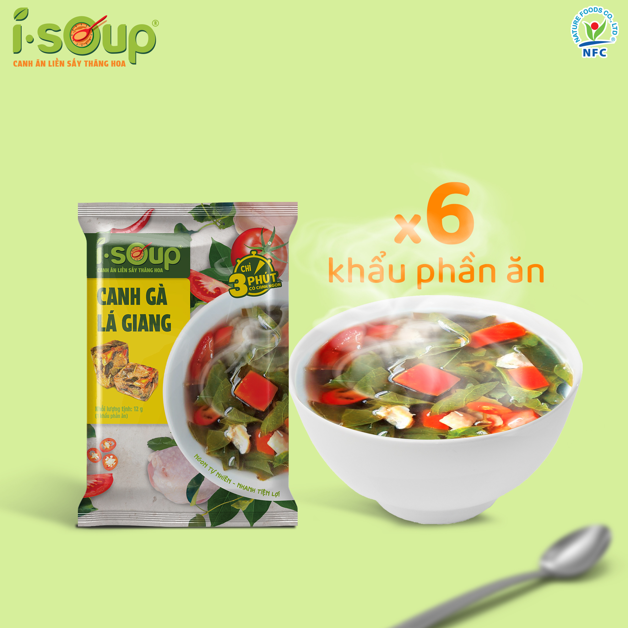 ✨Canh Gà Lá Giang Ăn Liền ISOUP 72g 06 Viên - Viên Canh Ăn Liền Sấy Thăng Hoa