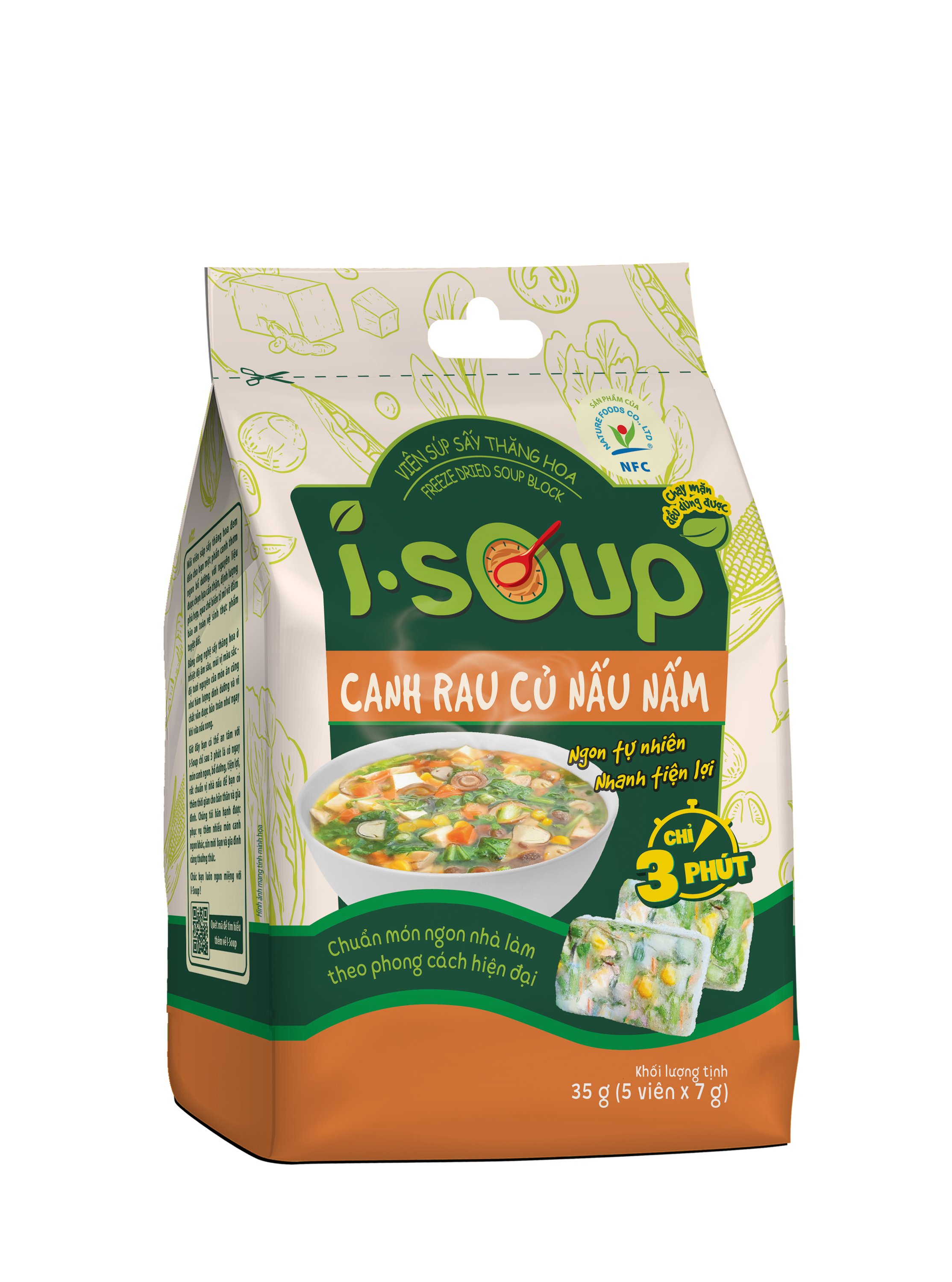 - Canh rau củ nấu nấm ăn liền I-Soup 35g 05 viên thơm ngon hấp dẫn, dạng viên nén nhỏ gọn tiện lợi. I-SOUP cho bạn tô canh ngon lành dinh dưỡng chuẩn món ngon nhà làm chỉ sau 3 phút, cho gia đình bạn bữa ăn ngon đặc biệt phù hợp cho những ngày bận rộn.