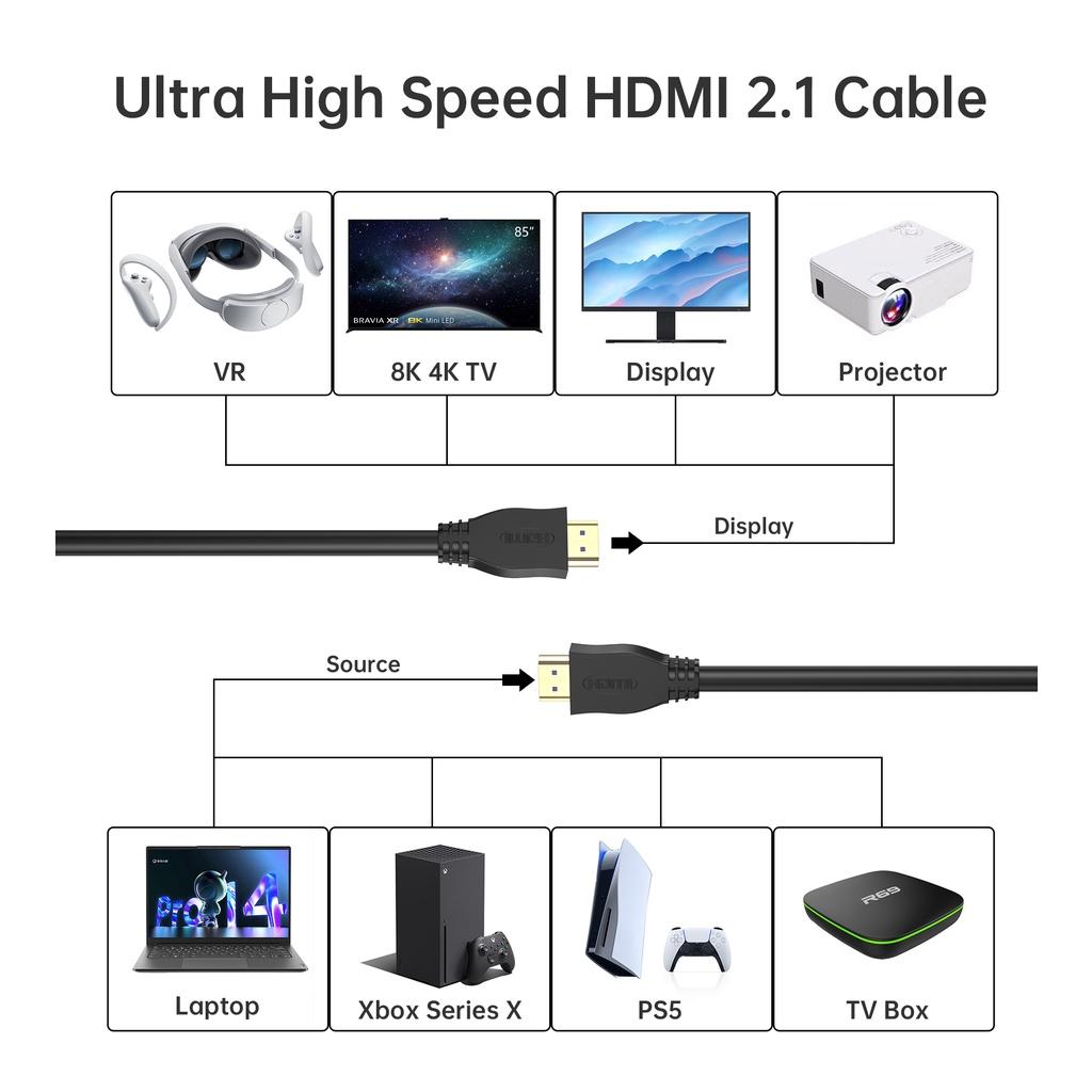 – Cáp với 2 đầu dương (đực) HDMI(Male) to HDMI(Male), chuẩn HDMI 2.1 hỗ trợ độ phân giải lên đến 8k60hz, tốc độ 48Gps, Audio 32 kênh, 3D support… cho phép truyền tải hình ảnh/ video và âm thanh chất lượng cao độ nét cực cao và gần như không có độ trễ.