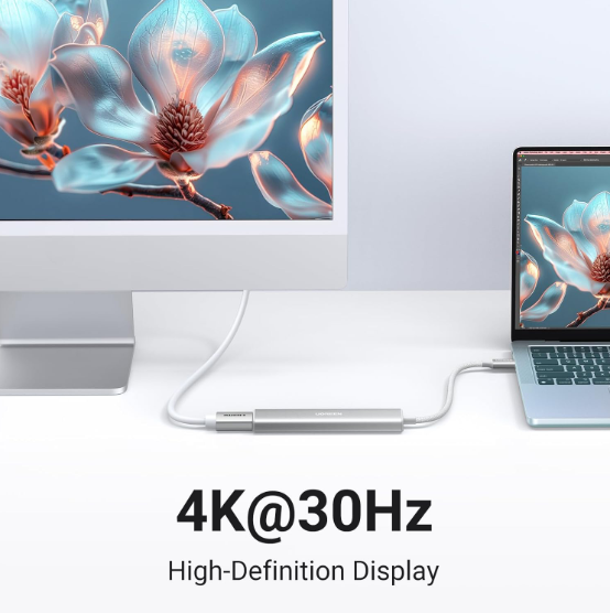 - Màn hình 4K tuyệt đẹp: USB-C Hub 5 trong 1 Ugreen 35580 Cổng HDMI hỗ trợ hiển thị phương tiện ở độ phân giải lên đến 4K 30Hz, giữ mọi khoảnh khắc đáng kinh ngạc chi tiết và cực kỳ sống động. Xin lưu ý rằng cổng C của thiết bị chủ cần hỗ trợ đầu ra video