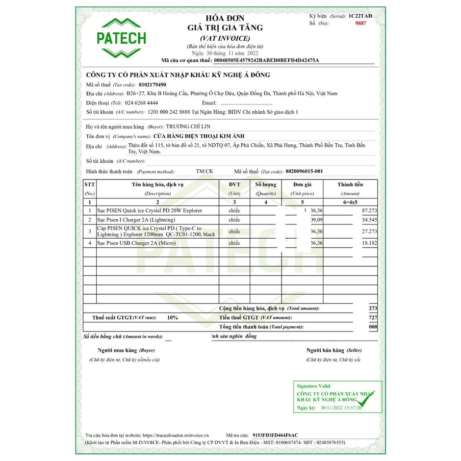 Tem/thông tin xuất xứ của NHÀ PHÂN PHỐI CHÍNH THỨC – PATECH JSC,.