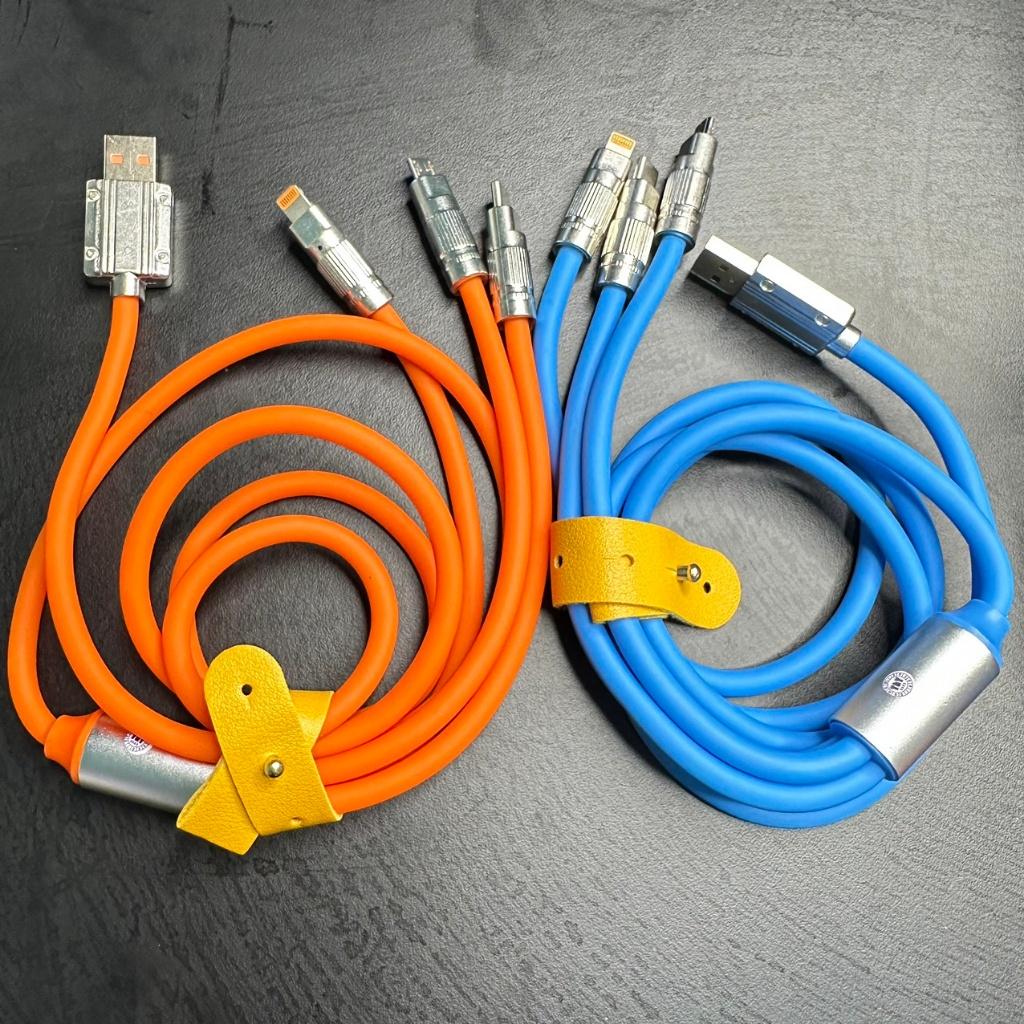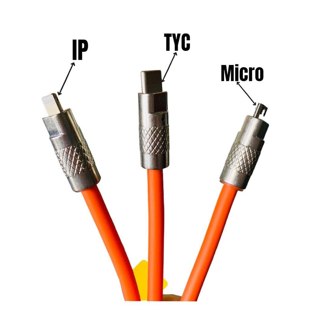Cáp Sạc 3 dây Trong 1 120W 6A Cổng USB Bằng Silicone Và Hợp Kim Kẽm Sạc Nhanh Bảo hành 12 Tháng