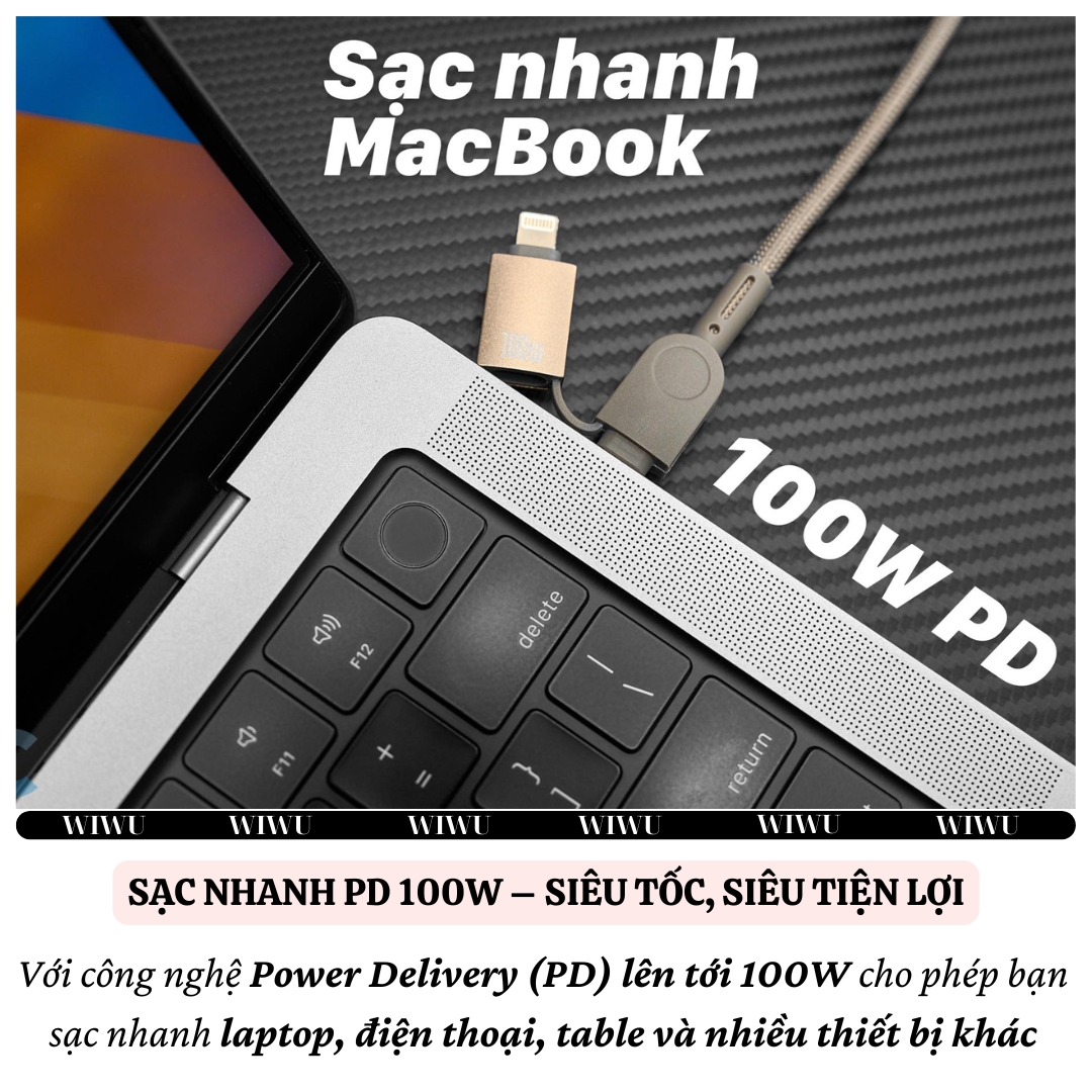 Cáp Sạc Nhanh Wi WU Legend 3in2 100W Sạc tất cả các thiết bị chỉ với 1 dây sạc 3in2 Wi WU Legend 100W. Bộ sạc tất cả trong một có ba cổng 1x Ligh