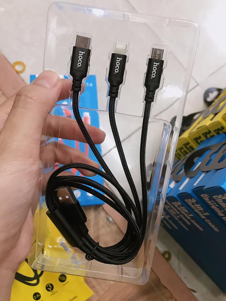 Cáp sạc 3 đầu Hoco X26 Lightning Micro USB Type-C - GIÁ 96.000N