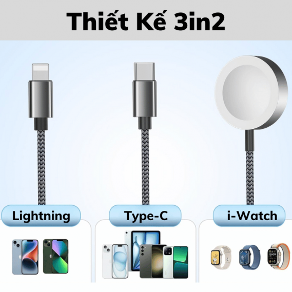 Cáp Sạc Nhanh Wi WU Legend 3in2 100W Sạc tất cả các thiết bị chỉ với 1 dây sạc 3in2 Wi WU Legend 100W. Bộ sạc tất cả trong một có ba cổng 1x Ligh