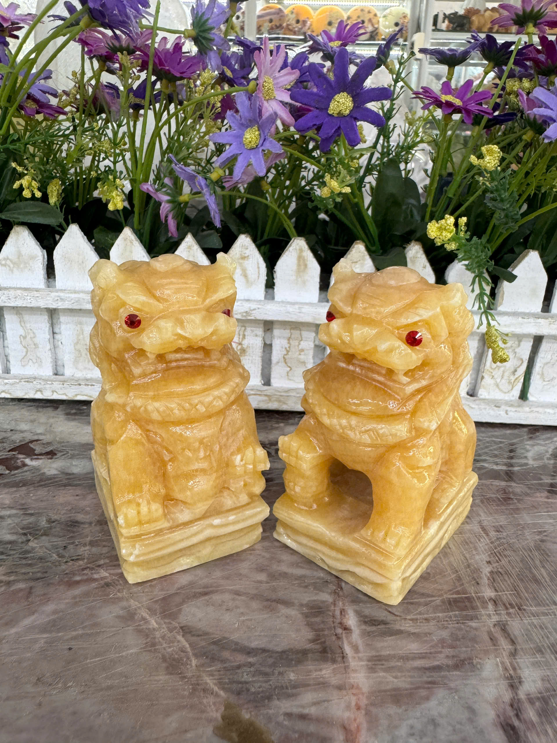 Hợp mệnh Thổ - Kim Chất liệu: Đá cẩm thạch vàng cà rốt Kích thước: Dài 15 cm X Rộng 6 cm x Cao 12,5 cm Khối lượng: 3,2 kg / cặp Ý nghĩa Tỳ