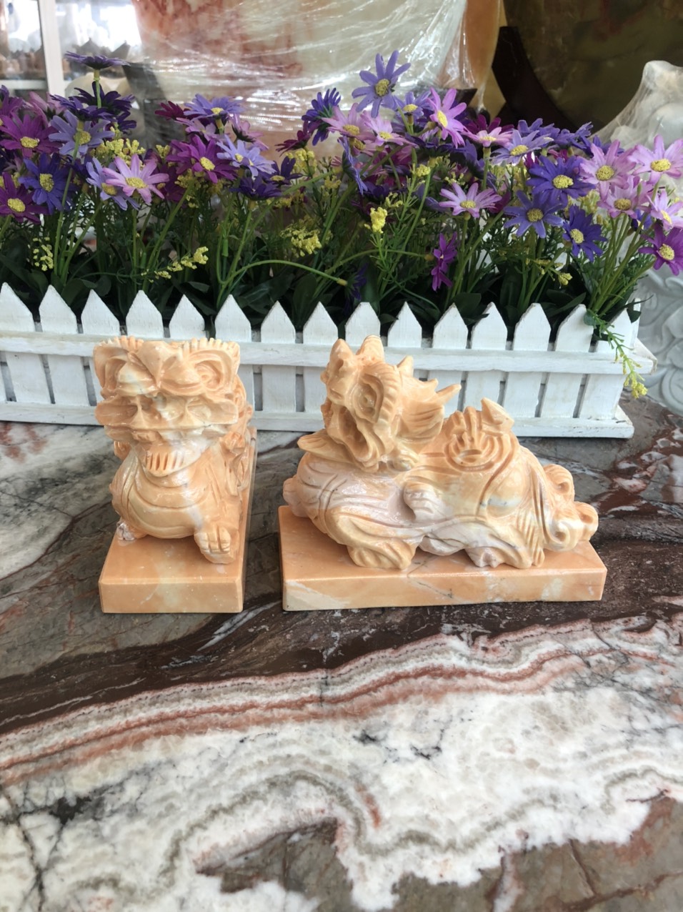 ✨Cặp Tỳ Hưu phong thủy đá cẩm thạch vàng cà rốt có đế - Dài 15 cm